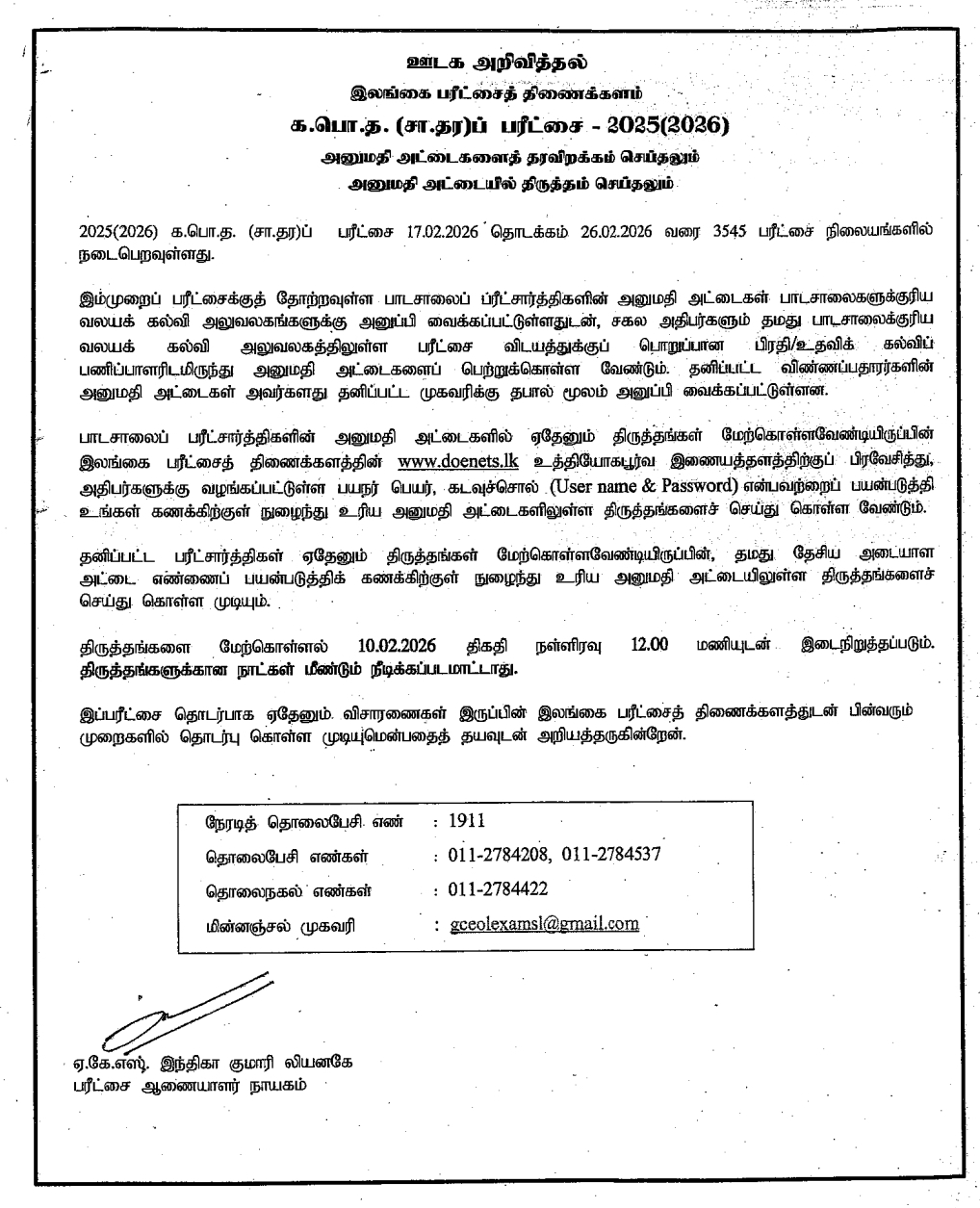 The Department of Examinations says the practical examination for the subject of Bio Systems Technology under the 2025 General Certificate of Education…