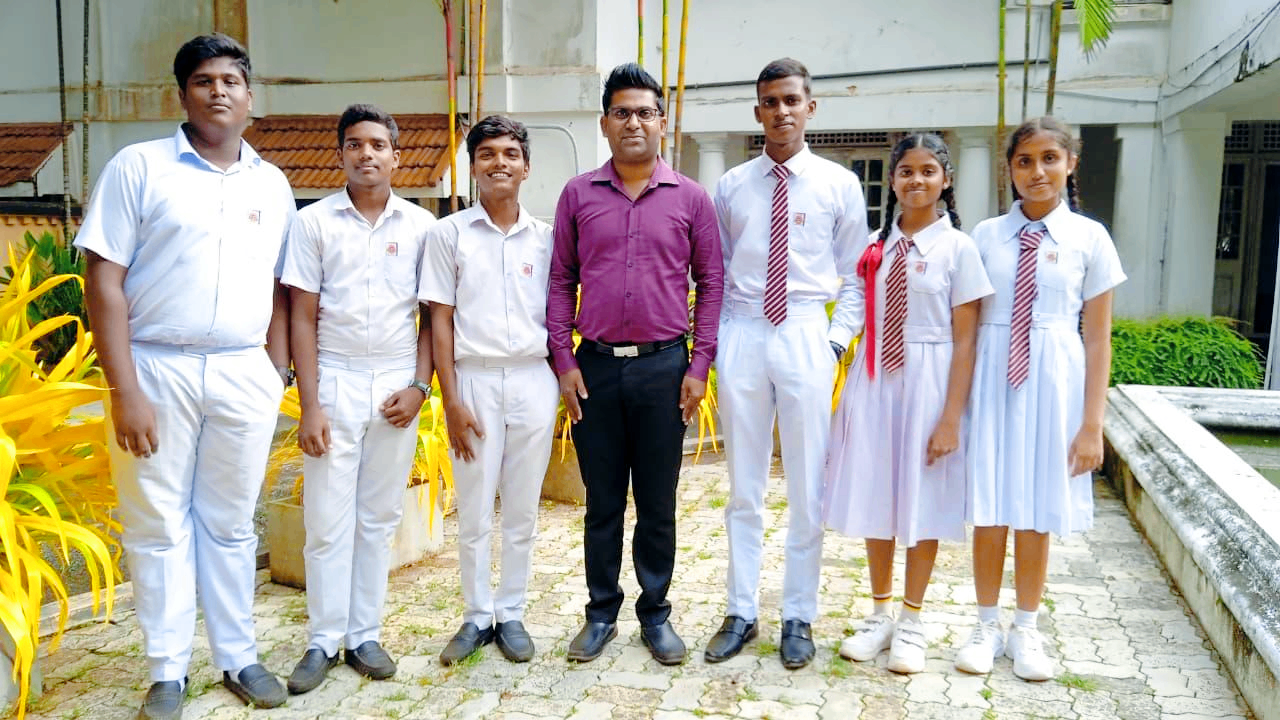 This accomplishment was made possible by the enthusiasm and talent of the students, combined with the dedicated training and guidance of their Sinhala Language teacher, Mr. Suneth Jayasanka, and the motivation and encouragement provided by the school Principal, Mr. Geeth Fernando. The picture shows, from left to right, Kavishka Chamodh, Avin Pemodha, S. Manoj, Mr. Suneth Jayasanka (Teacher in Charge / Coach), Adeesha Fernando, Lasandi Nimduni and Nithini Sanchala.