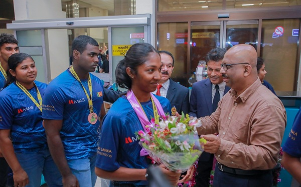 Minister of Youth Affairs and Sports Sunil Kumara Gamage, along with several officials from the Ministry of Sports, were present at the Bandaranaike International Airport in Katunayake to welcome the athletes.